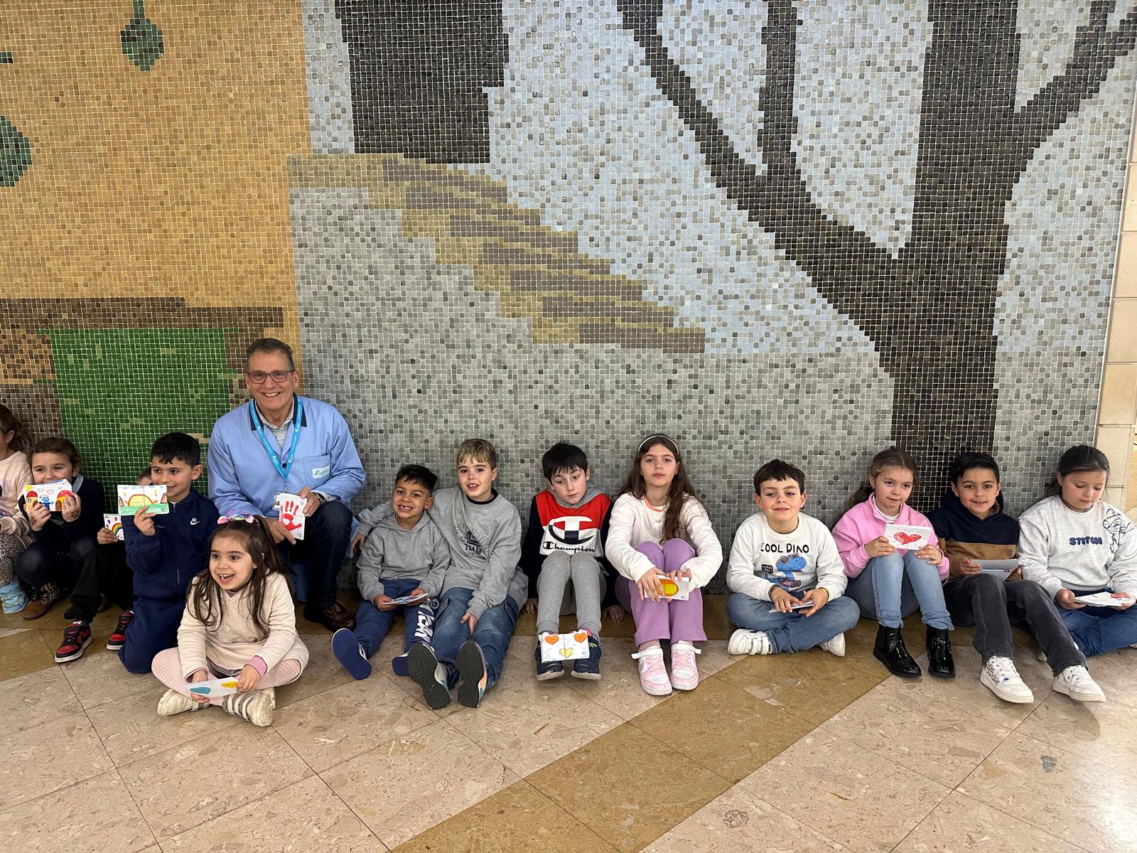 Esta manhã a Liga representada pela pessoa do Sr. António Martins foi receber alunos da Escola EB Souto de Nogueira da Regedoura que ofereceram postais feitos peos meninos(as) para serem entregues na nossa visita como Voluntários aos doentes.